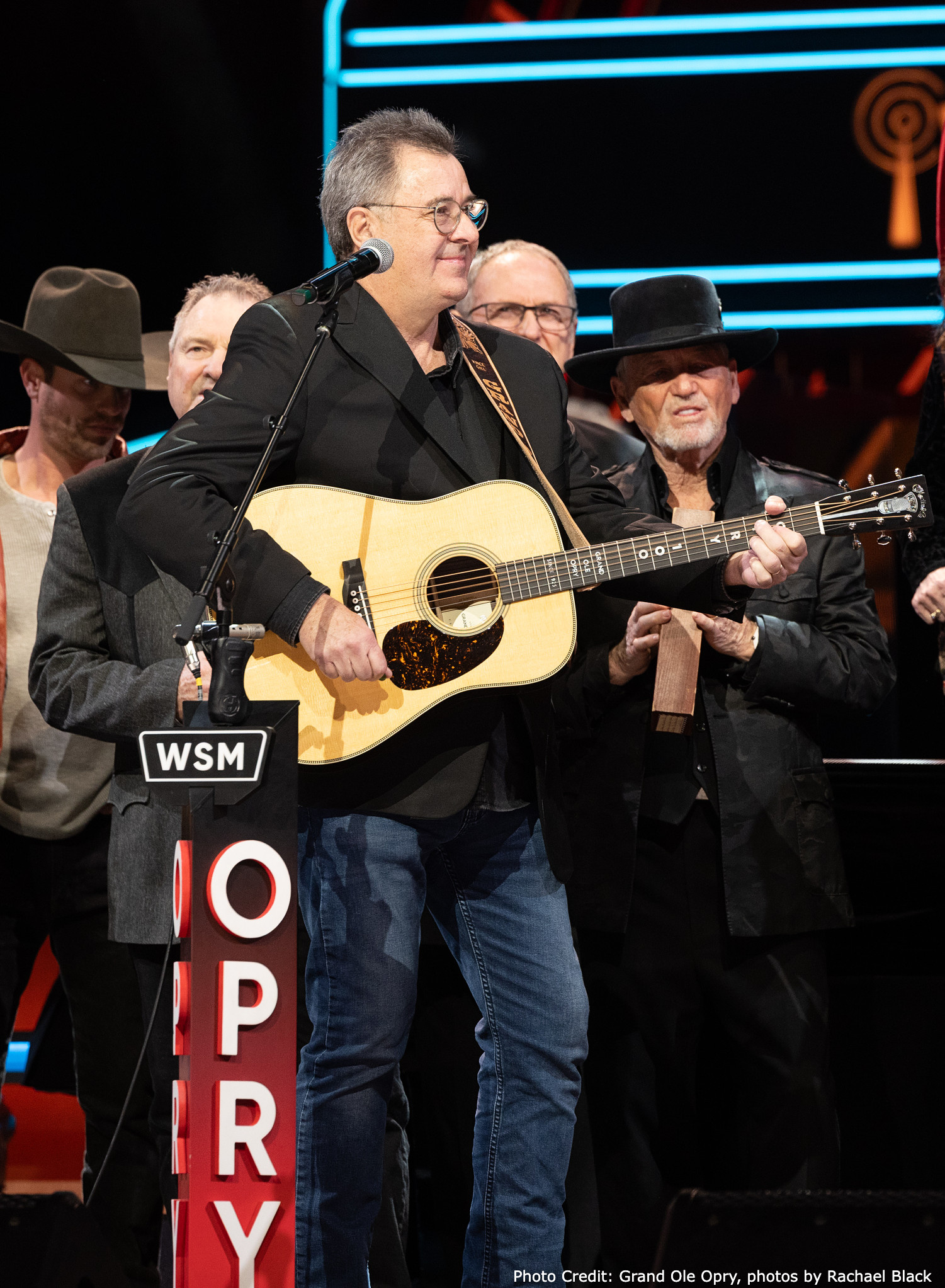 Vince Gill (Opry member since 1991) introduced and played the new exclusive Opry 100 guitar that Martin Guitars designed for the centennial anniversary and in celebration of all the music to be made in the future on the Opry. This marked the first time this limited-edition guitar has ever been played publicly.