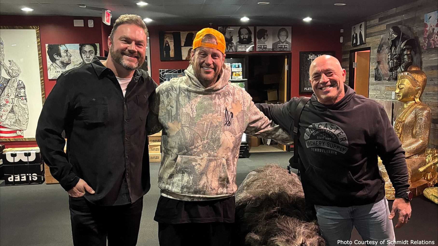 (l to r): Jordan Pettit, VP Artist & Industry Relations, Opry Entertainment Group, Jelly Roll, Joe Rogan