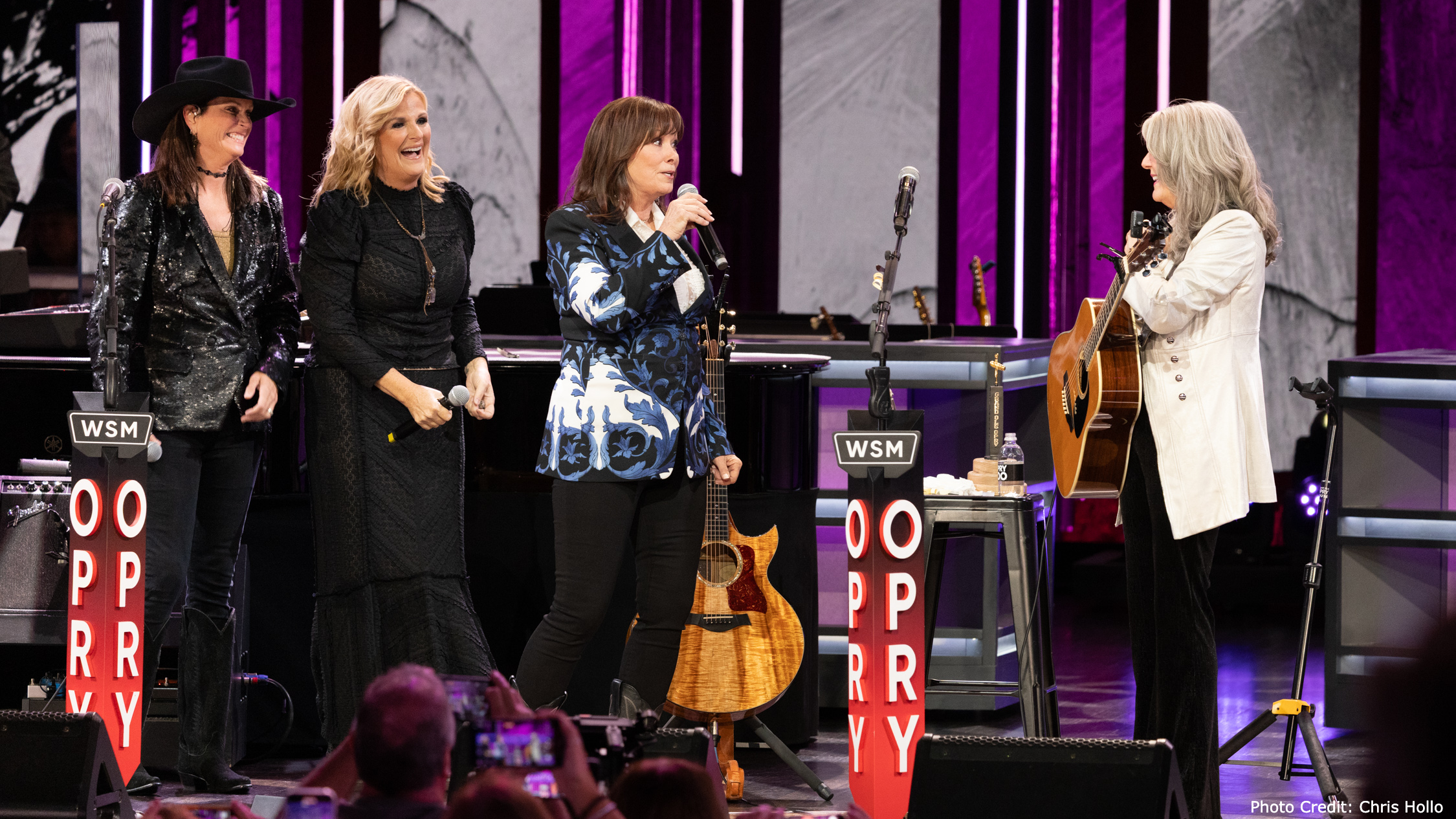 After Mattea’s second song, Opry member Terri Clark presented her Opry member award saying, “I can’t believe my 18-year-old self gets to do this. Your blend of country, folk and bluegrass carved out a niche at mainstream country radio that continues to inspire and influence to this day. It sustained a fan base and career longevity that most can only dream of. Tonight, we add another milestone to that list.”