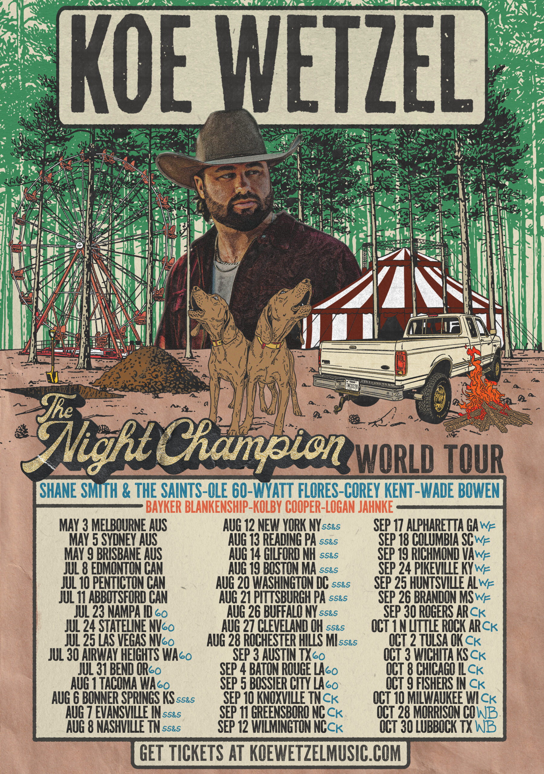 Ole 60, Wyatt Flores, Corey Kent, Wade Bowen, Bayker Blankenship, Kolby Cooper and Logan Jahnke will also join as support across varying dates throughout the U.S., Canada and Australia.
