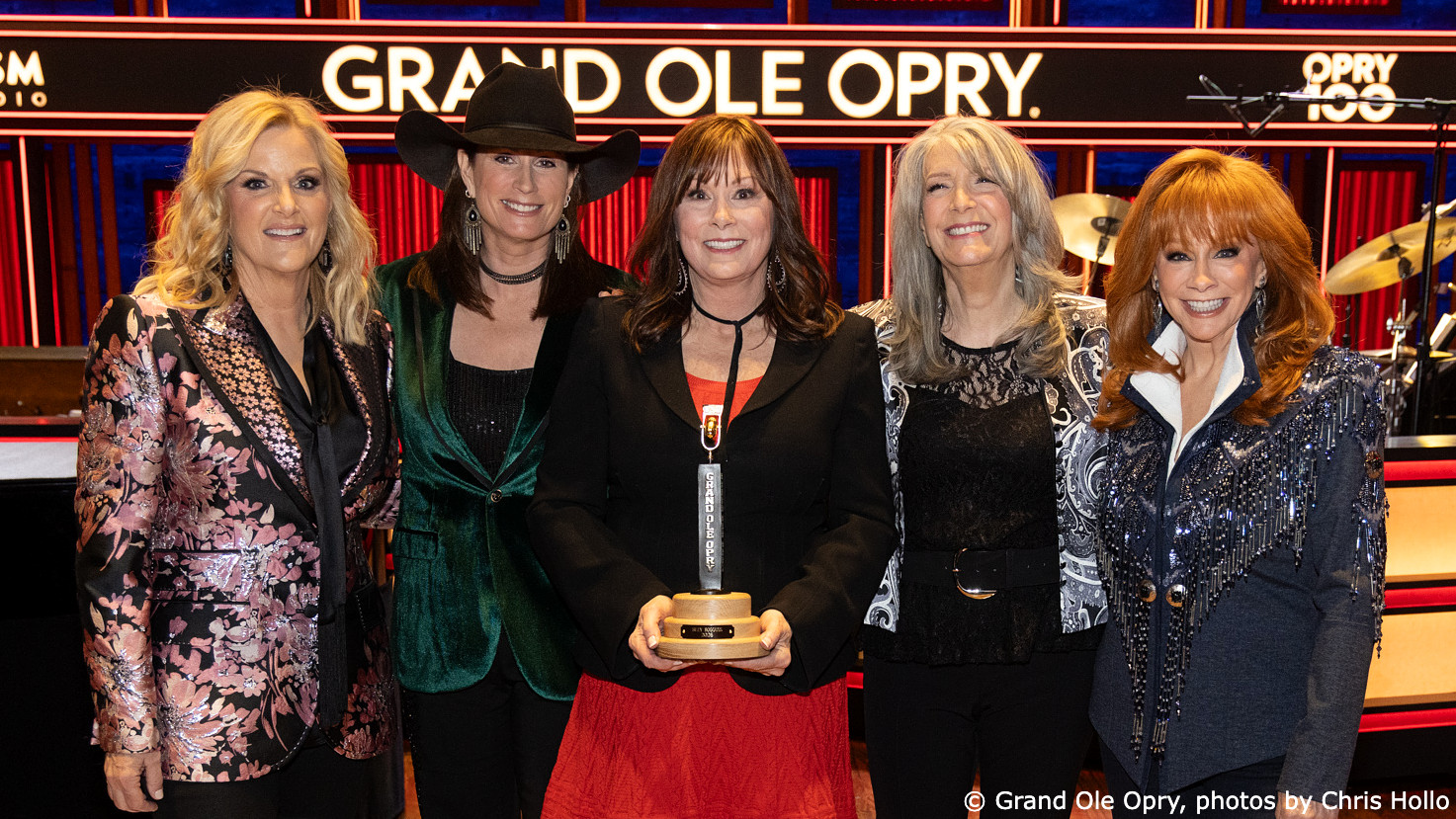 Suzy Bogguss’ friends and fellow Opry members Terri Clark, Trisha Yearwood, Kahty Mattea and Reba McEntire join Suzy Bogguss for “Hey Cinderella” © Grand Ole Opry, photos by Chris Hollo